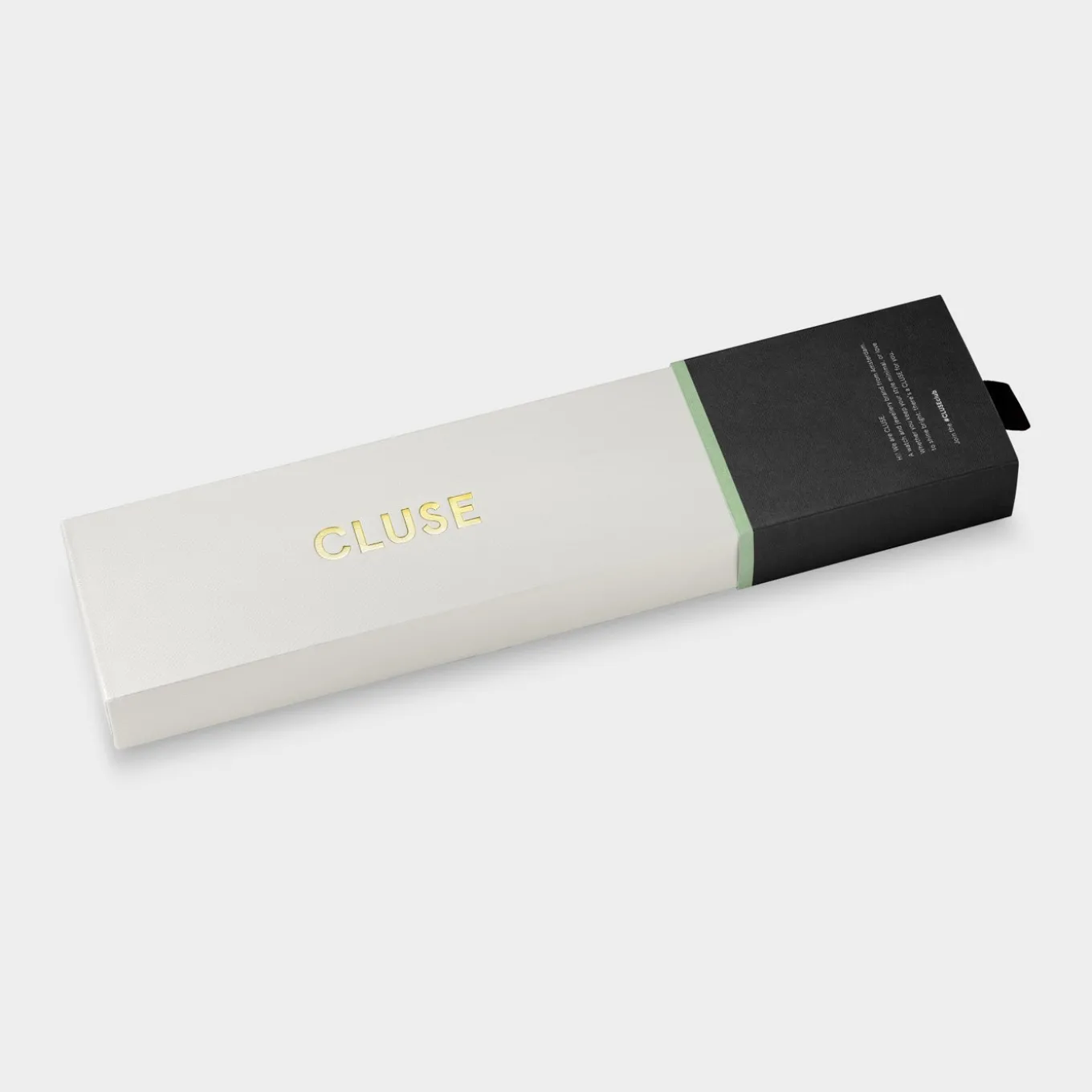 Angeboten in einem grauen Kunstlederetui. Wie all unsere Uhren aus der Boho Chic Kollektion können Sie diese Uhr problemlos mit jedem Boho Chic oder einem beliebigen 18 mm CLUSE Leder- oder Mesh-Armband individualisieren.