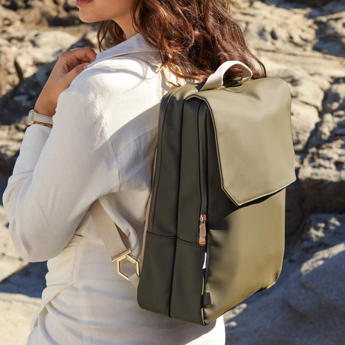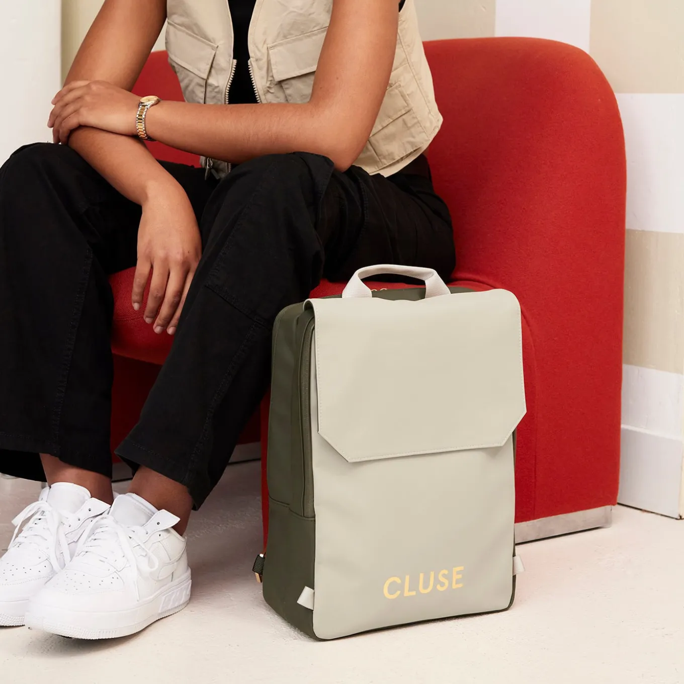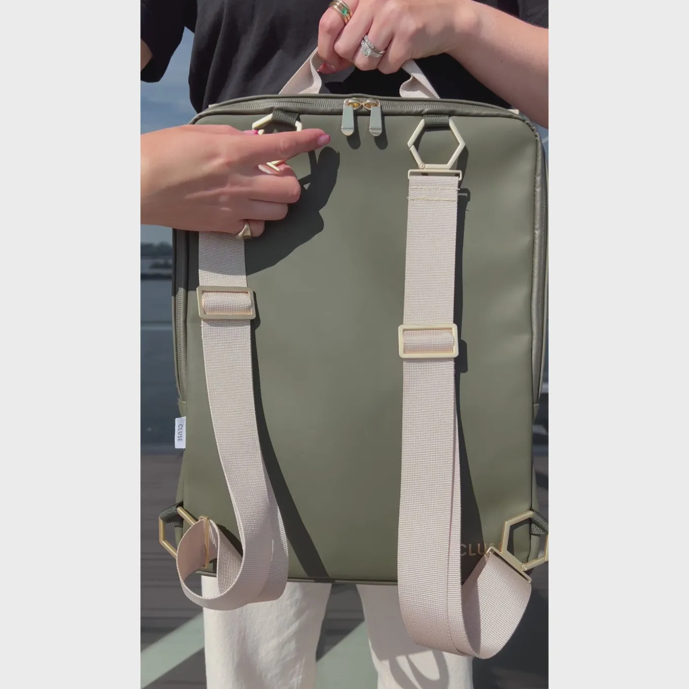 Der CLUSE Le Réversible Rucksack ist der perfekte Alltagsbegleiter, um alle wichtigen Dinge an einem Ort zu verstauen. Der Rucksack ist wasserabweisend und verfügt über zwei große Fächer mit wasserfesten Reißverschlüssen, ein 15,6-Zoll-Laptopfach, ein Innenfach mit Reißverschluss und zwei kleine Fächer. Dieser Le Réversible Rucksack ist auf der einen Seite dunkelgrün und auf der anderen Seite sandfarben. Mit den speziellen abnehmbaren Gurten können Sie ihn einfach umdrehen, um die Farbe zu tragen, die zu Ihrem Outfit und Ihrer Stimmung passt. Egal, ob Sie zur Arbeit oder Schule gehen oder mit Freunden zu Mittag essen, der Réversible Rucksack ist das perfekte Accessoire, um Ihren Look abzurunden. Kombinieren Sie ihn mit Ihrer CLUSE Uhr und Ihrem Schmuck für den ultimativen CLUSE-Look.