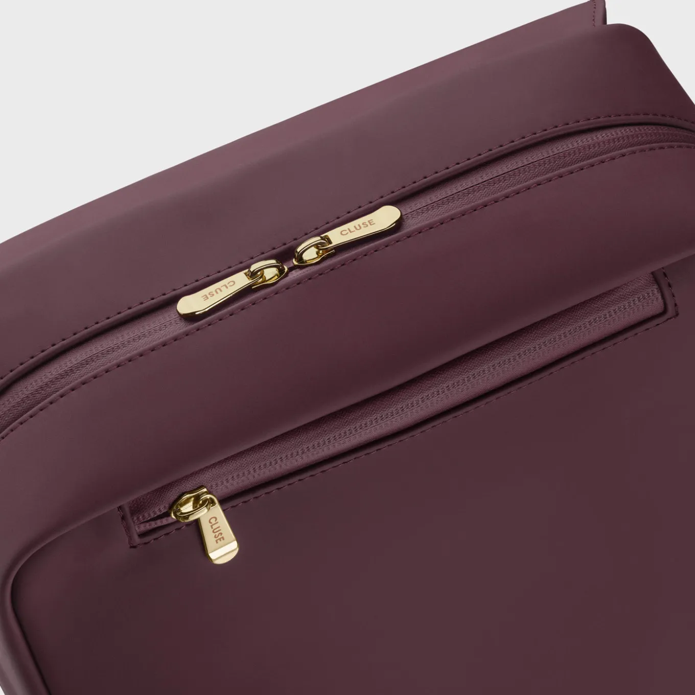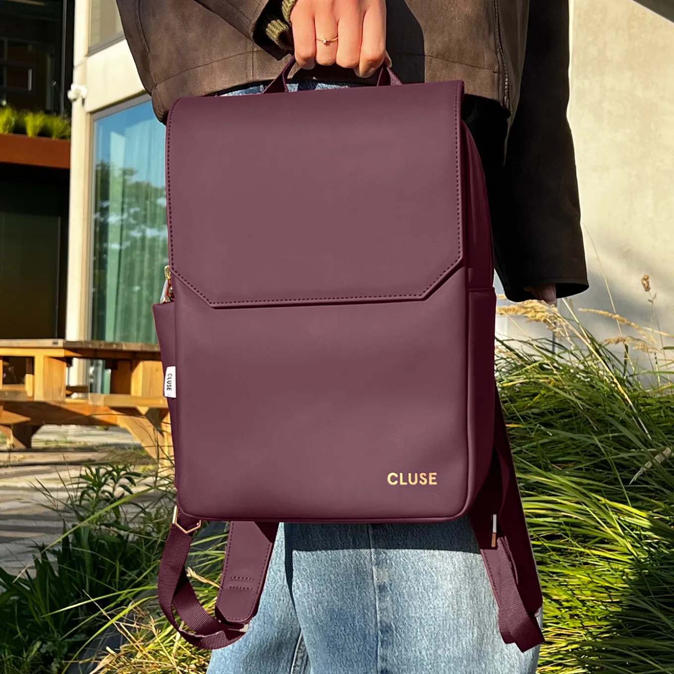 Entdecken Sie Nuitée, unsere neueste Rucksack-Kollektion für Damen und Herren, perfekt für den Übergang von der Arbeit zum Freizeitleben. Diese sieben neuen Modelle sind kleiner und auffälliger als Le Réversible und verleihen Ihrem Look eine schicke Note. Der Nuitée-Rucksack für Damen und Herren in sattem Pflaumenrot mit goldenem Logo und Metallteilen ist ein echter Hingucker. Die leuchtende Farbe und die luxuriösen Details werten sowohl den lässigen als auch den eleganten Stil auf. Dieser vielseitige Rucksack ist so konzipiert, dass Sie sich selbstbewusst und stilvoll fühlen und eignet sich ideal für lässige und elegante Ensembles. Der kompakte und dennoch funktionelle Nuitée-Rucksack misst 35 x 26 x 14 cm, verfügt über ein Fassungsvermögen von 11 Litern, ein 13-Zoll-Laptopfach, zwei Reißverschlusstaschen und verstellbare Träger von 64 bis 81 cm. Kombinieren Sie den Nuitée-Rucksack mit Ihrer CLUSE-Uhr und Ihrem CLUSE-Schmuck für einen perfekt abgestimmten Look.