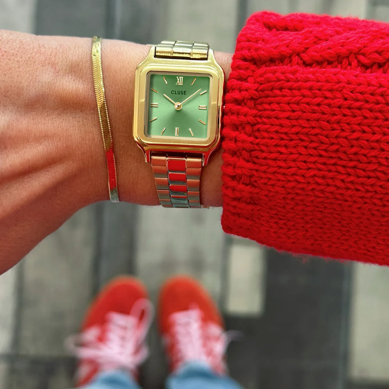 Verleihen Sie Ihrem Look ein Gefühl von Luxus und Raffinesse mit der Gracieuse Petite-Damenuhr. Ausgestattet mit einem quadratischen, goldfarbenen 24-mm-Gehäuse, einem leuchtend hellgrünen Zifferblatt und einem 14-mm-Edelstahlarmband. Passen Sie das Aussehen Ihrer Uhr ganz einfach mit jedem 14-mm-Uhrenarmband an. Sie können die Größe des Armbandes ganz einfach selbst einstellen.